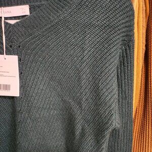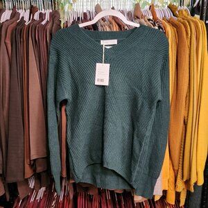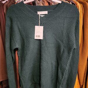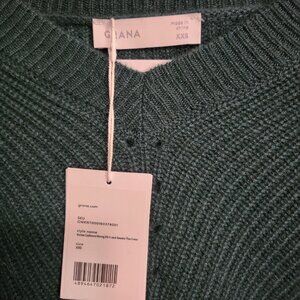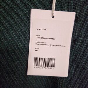 NWT Grana Women's Cashmere Moving Rib V Neck Sweater in Pine Green. No Flaws