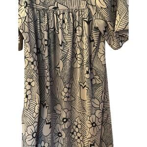 Granada Vtg 60s Midi House Dress Size Med Gown Duster black - Tan Floral Muumuu patio dress casual nightgown