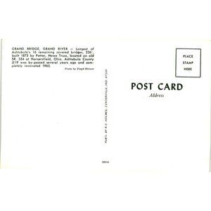 Grand Bridge Grand River Ohio Postcard Travel Souvenir Unposted Covered Bridge