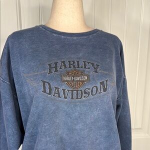 Casual and cool Harley-Davidson crewneck. Washed blue tone. Perfect for everyday wear.Good Pre- Owned Condition. Pit to Pit 24” Length 25”