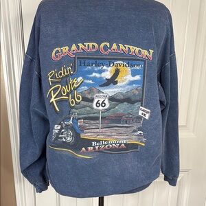Grand Canyon Harley-Davidson Men's Washed Blue Crewneck Sweater Sz L