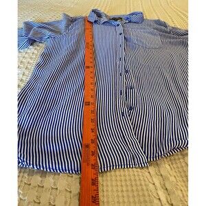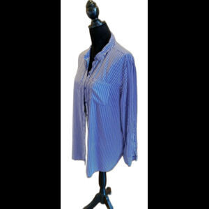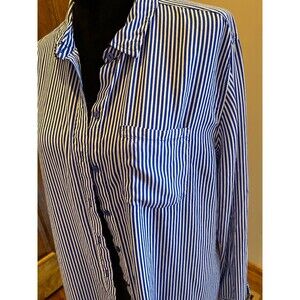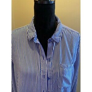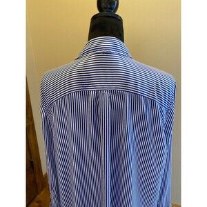 Grand & Greene Button Down Blouse Plus Size XL Blue White Stripes Collar Pocket