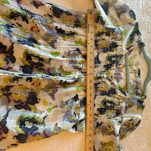 CUTE lightweight 3/4 sleeve top. Smocking detail on the chest area. Measurements in pictures. From a clean, pet and smoke free home.