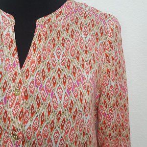 Grand & Greene Tunic Aztec Print Rayon Top Hi Lo
