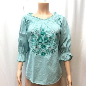 Grand & Greene Womens Boho Striped Embroidered Peasant Top Size Medium. Excellent condition! From smoke free home.