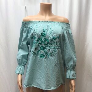 Grand & Greene Womens Boho Striped Embroidered Peasant Top Size Medium