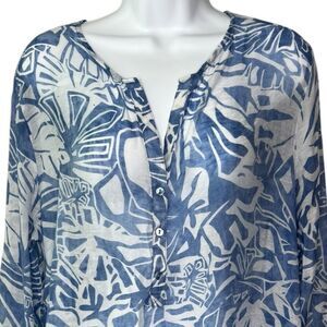 Grand & Greene Women’s L Printed Sheer Henley Blouse