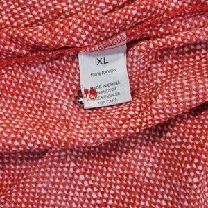 This size XL blouse features a vibrant red and white geometric pattern, making it a standout addition to any ensemble. Its lightweight rayon fabric ensures breathability and ease of movement, perfect for a day at the office or a casual evening out.