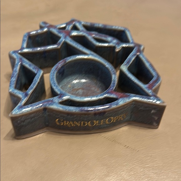 Unique blue ceramic candle holder with Grand Ole Opry branding. Perfect for adding a touch of elegance to any space.