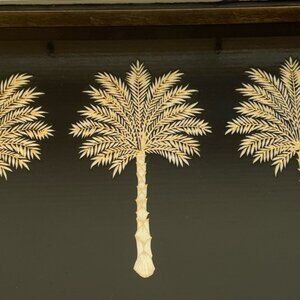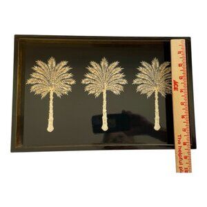 Elevate your space with this stunning black vanity tray, featuring a refined palm tree design and a lustrous lacquer finish. Handmade in Vietnam, each tray is a unique piece of art—perfect for your vanity, coffee table, or entryway. Preowned-very good condition.