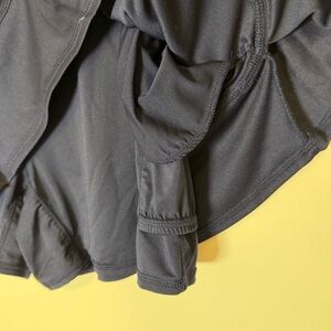 Stylish navy women's sport skort perfect for pickle ball games. Comfortable and versatile for everyday wear. There are pockets and built-in ball holder.