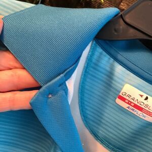 Grand Slam Size Medium airflow short sleeve blue stripe golf polo.