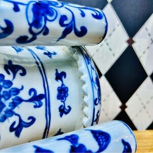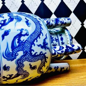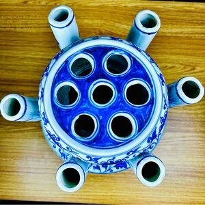 blue white tulipiere, dragon porcelain vase, chinoiserie decor, blue white porcelain vase, multi spout vase, tulipiere flower vase, asian inspired decor, statement porcelain vase, large ceramic vase, cobalt blue