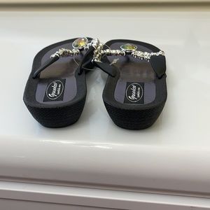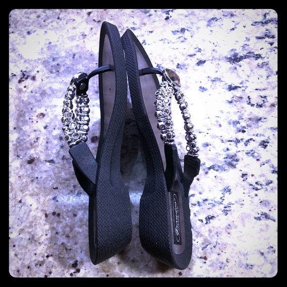 Grand I Rhinestone Sandals Are Stylish.Elegant And Comfortable.The Flip Flop Have Bedazzling Rhinestone That an AB Coatings on The Jewelry Which. Will Reflect The Lighting.They Have A Large Round Crystal Jewelry in The Center With Double Row of Bedazzling Jewelry on the Strap.The Black Sole on A 1.50” Heel .