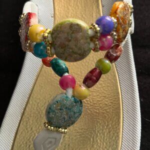 These thong flip flops are a size 8 with a 1 ½” heel. All of the beads are intact. There are no chips in any of them. The top of the flip flop is in good condition. *These have been gently loved. Therefore, the soles are a little dirty. I scrubbed the best I could. They will be priced accordingly.