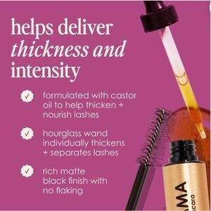 •The mascara is formulated with key ingredient castor oil, which possesses naturally high levels of omega-6 fatty acids to help thicken and nourish lashes.