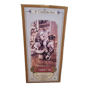 The Grandeur Noel 31” Christmas Santa Bear 1999 Collector's Edition is a beautifully crafted holiday figurine that captures the charm of Christmas in a traditional Victorian style. This plush bear, standing at 31 inches tall, exudes a warm and festive spirit, perfect for any holiday display. The bear comes boxed for easy gifting or storage, making it a special addition to any collection of holiday figurines or teddy bear memorabilia from the late 20th century. With its cream color and detailed design, this bear is sure to be a cherished treasure for adults who appreciate whimsical and nostalgic holiday decor.