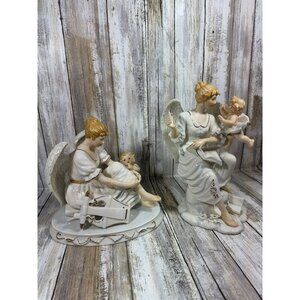 Grandeur Noel Porcelain Angel Set w/ Gold Accents 2001 Collectors Edition