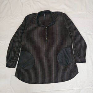 Grandi Women's Black Striped Exposed Front Pockets Long Sleeve Tunic Top Size Medium