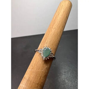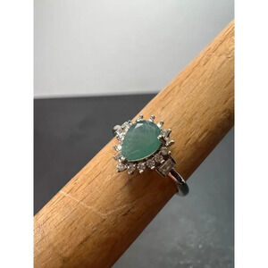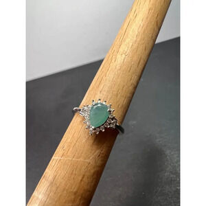 Grandidierite bluish green gemstone with white zircon accent stones in a print setting. Platinum plated over sterling silver. Size 9. 925 Djoy.
