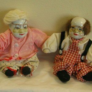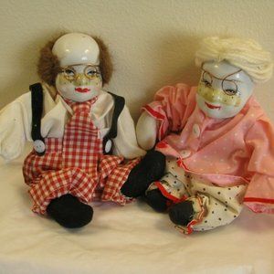 Grandma and grandpa White porcelain clown dolls