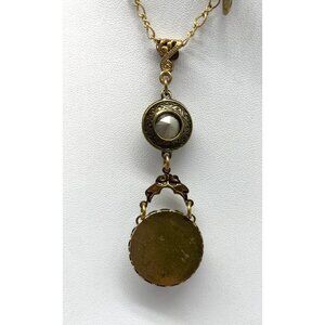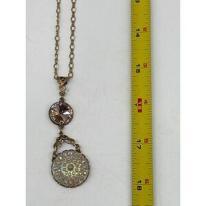 Grandmothers Buttons Rivoli Necklace & Earrings Set Gold-Tone & Pink & Iridescen