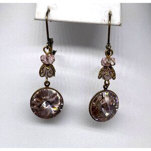 This elegant set features a gold-tone necklace and matching earrings adorned with Swarovski Rivoli crystals and delicate pink accents. The intricate design combines vintage charm with a sophisticated aesthetic, making it a refined accessory choice for complementing formal or semi-formal attire.