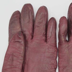 Grandoe cranberry ladies leather gloves with cashmere lining 7.5. Some wear on fingers-see photos.