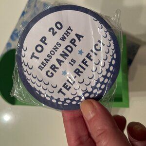 The first gift is a wooden box in green decorated with the phrase “Best Grandpa by Par” along with “20 reasons why grandpa is tee-rific.” It comes with twenty golf ball–shaped cards designed for filling in personal reasons why your grandfather is cherished. A thoughtful and interactive keepsake he will treasure. Brand: Eccolo.