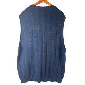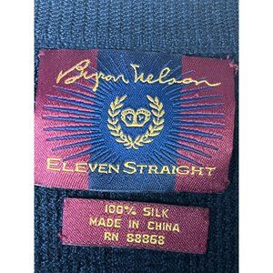 Experience luxury with the Byron Nelson Eleven Straight 100% Silk Sweater Vest in navy blue. With its flattering V-neck design, vertical lines, and warm, stretchy knit, this X-Large vest is a preppy must-have.