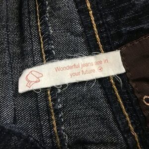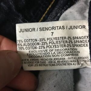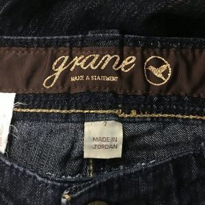 Mid-rise, dark indigo wash, boot cut Grane jeans. The fiber is a cotton, polyester & spandex stretch denim blend. Belt loops & five pockets with angled coin pocket. Button closure back flap pockets. Yellow-gold contrast stitching. No notable flaws. Women’s size 7. Measurements: Waist: 30" Inseam: 31" Rise: 8" Leg Opening: 19” (or 9.5” inches measured flat).
