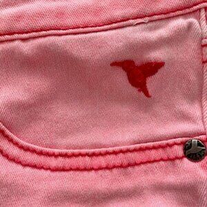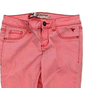Grane Pink Jeans Junior Size 7. Faux pockets in the front, 2 back pockets. Zipper fly. 98% Cotton, 2% Spandex- giving some stretch. Approximate measurements laying flat: 14" waist, 37" length, 30" inseam, 8 " rise.