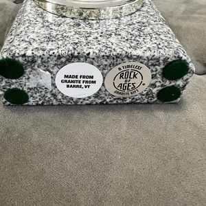 Table top granite clock. Beautiful piece. Cool tone stone with gold hardware