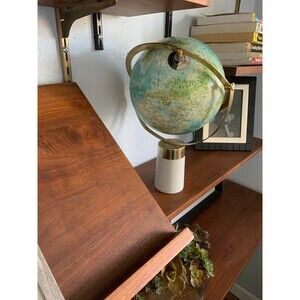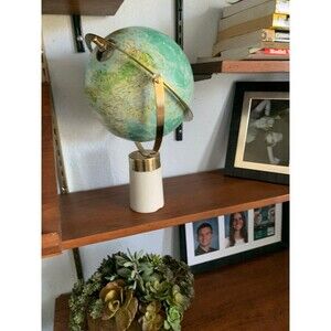 The Granite base provides a 4 pound weight of substance that gives meaning to the world, encompassed by fittings of solid brass. There is a chip to the base where it stands, as seen in picture number two.