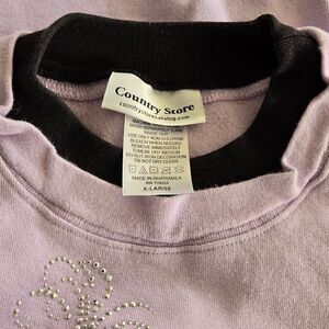 This Country Store sweatshirt in lavender purple features a floral embroidered design, making it a vintage piece for women in size XL.