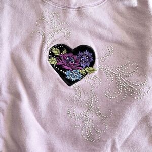 Granny Core Sweatshirt Lavender Purple Floral Sequin Embroidered Women’s XL