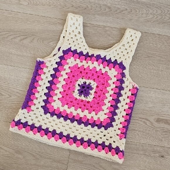 Granny Square Boho Crochet Tank Top Bright Pink And Purple Colors Youth