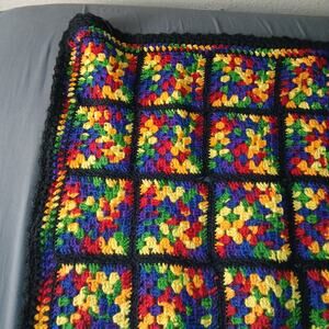 Granny Square Multicolor Crochet Afghan Sparkly Yarn Bulky Blanket