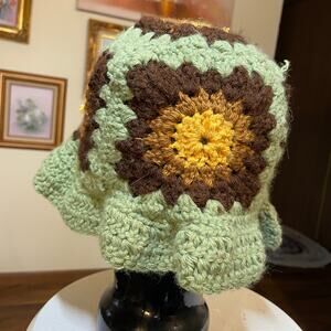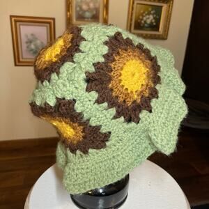 How absolutely adorable is this granny square sun hat! In great condition with no signs of age or use. Colors green brown and yellow and looking for a new home. Adult sized hat.