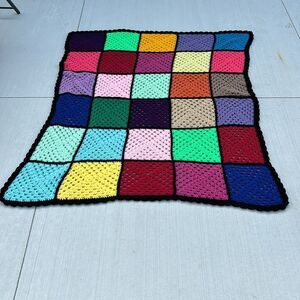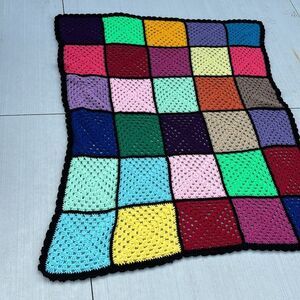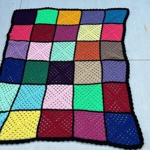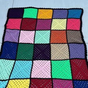 Granny Square afghan crochet bright colorful multi color blanket throw 60x70 inches