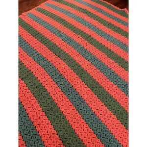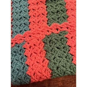 BEAUTIFUL Granny Square Afghan approximately 63 By 45. Dimensions are approximate as item does flare out slightly on one side (see photos). Colors are pink, blue, and a teal-green. In excellent condition from a smoke-free home.
