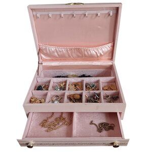 Grannys Vintage Pink Jewelry Box Gold Detailing & Drawer 12" 1960's