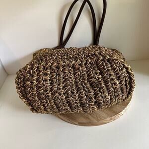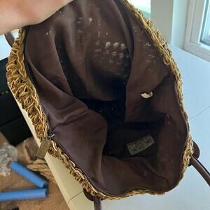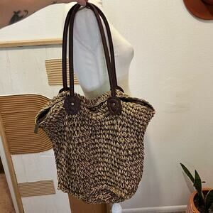 Granola Girl Neutral Earth Tone Woven Wicker Large Zipper Laptop Tote Bag