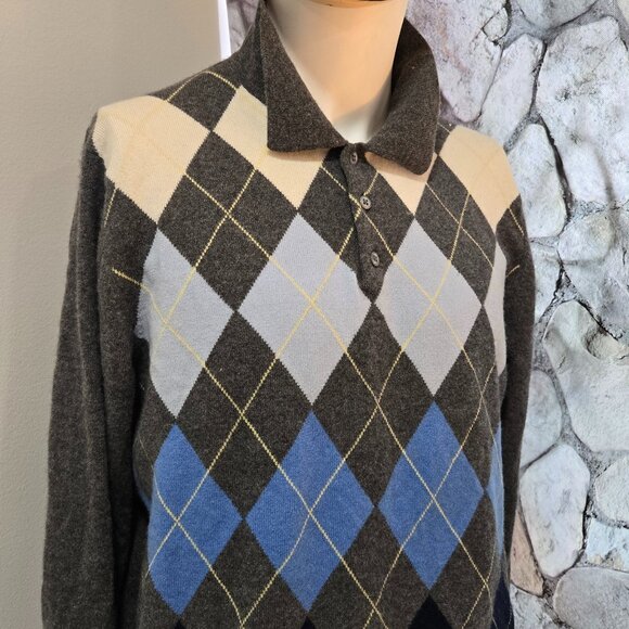 🔥 Grant Taylor Men’s Cashmere Argyle Sweater – Golf-Ready Elegance | MINT!