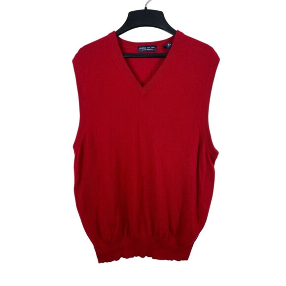 Grant Thomas 100% Cashmere Sweater Vest Red V-Neck Two Ply M Holiday Winter