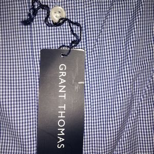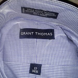 Grant Thomas Single needle tailoring 100% Cotton 80's 2 ply broadcloth. Size 17 34/35 NWT.