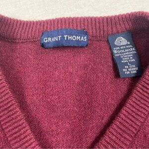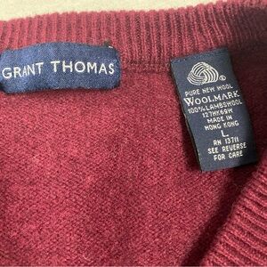 Grant Thomas Men 100% Wool long sleeve Lambs Wool Sweater V Neck Wine Large