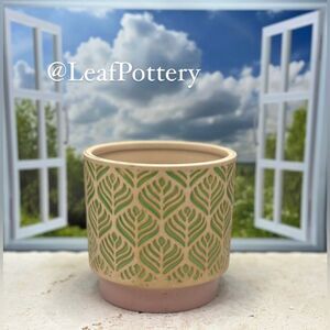 Dimensions: 5”H x 5.25”W, Opening 4.9”, weight 1lbs 7.9oz, No drainage hole, Material: Ceramic, Made in China, Color : Beige , Light Pink & Green, Perfect for Indoor gardening, Don’t forget to dress up your plants 🪴
