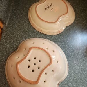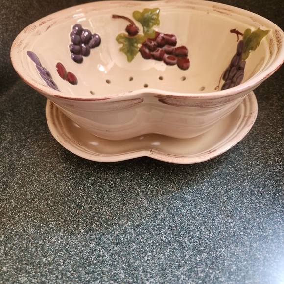 Enhance your kitchen with this elegant ceramic colander set featuring a charming grape design. Perfect for rinsing fruits and vegetables.
