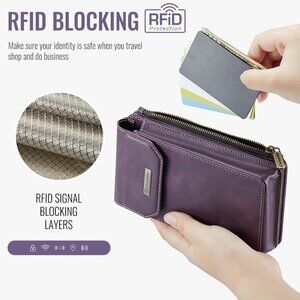 Grape Purple Small Crossbody Cell Phone Wallet Purse RFID Blocking with 10 Card